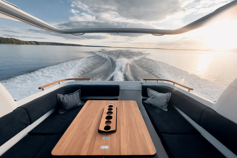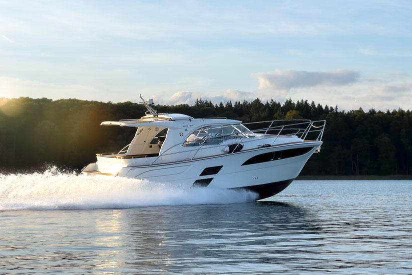 Wir empfangen Euch auf unserer Marex 310 SUNCRUISER für eine unvergessliche Fahrt über die Gewässer der Mecklenburgischen Seenplatte.